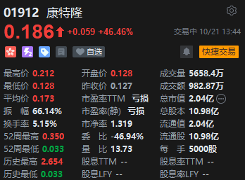 10月21日消息,港股半导体概念股集体逆势高涨黄金配资网站精选 ,小盘股康特隆暴涨46%,报0.186港元,成交额982.87万港元,总市值2.04亿港元。