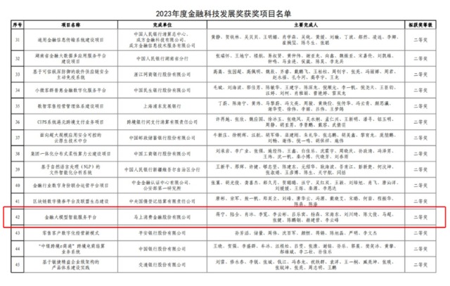 马上消费“金融大模型智能服务平台”荣获2023年度金融科技发展奖二等奖图片来源: 中国人民银行官方网站